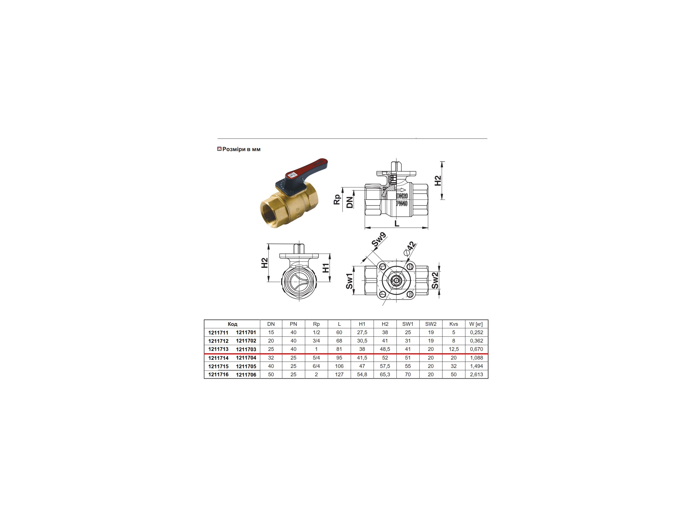 Двухходовой регулировочный шаровой кран DN25 (1") без ручного привода