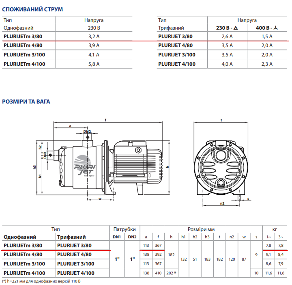 Багатоступінчастий самовсмоктувальний насос PLURIJET 3/80 призначений для перекачування чистої води, яка може містити підвищену кількість повітря, і рідин, хімічно неагресивних по відношенню до конструкційних матеріалів насоса. Відмінними рисами PLURIJET є безшумність, надійність і низький рівень енергоспоживання, і тому вони рекомендуються до застосування в побутовому і комунальному секторах, зокрема, в поєднанні з гідроакумуляторами, для підвищення тиску і подачі води, а також в системах збору та використання дощової води, в зрошувальних системах і т.д.