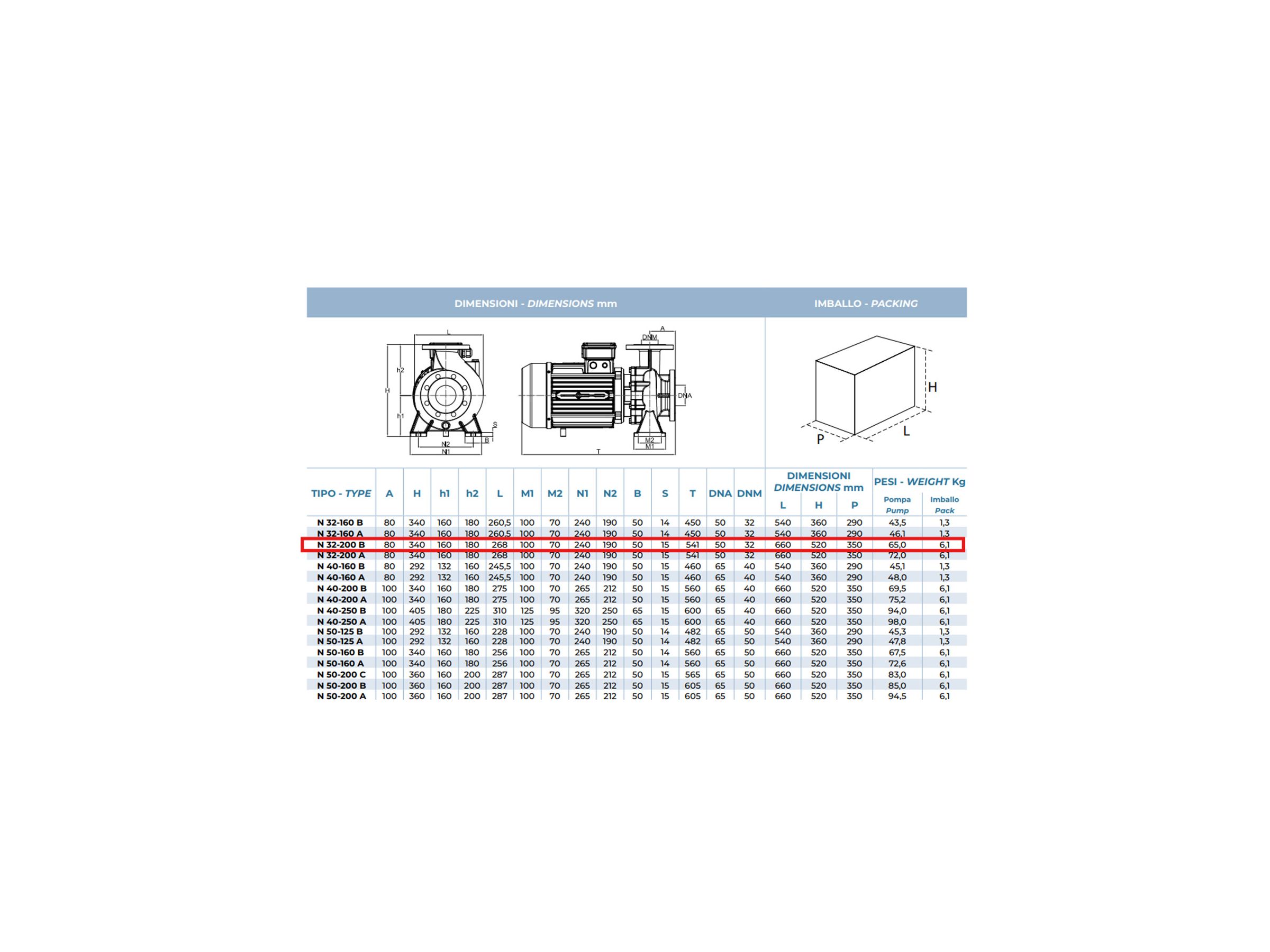 Корпус насоса, робоче колесо виготовлені з чавуну G20, вал із нержавіючої сталі AISI 304, та керамічне/графітове NBR механічне ущільнення. В насосі Conforto N 32-200 В застосовується електричний двигун закритого типу з зовнішнім вентилятором охолодження, ступінь захисту IP44. Ізоляція класу F.