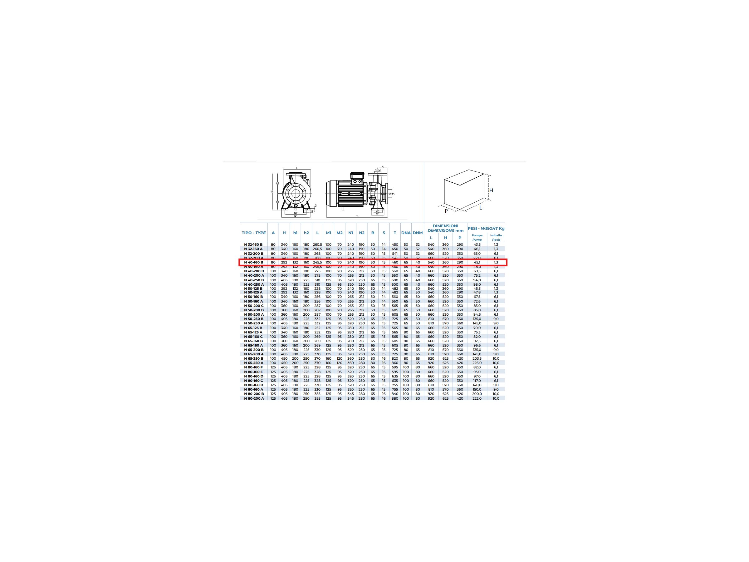 Відцентровий насос Conforto N 40-160 В має головну особливість - здатність створювати середньо-високі витрати та високі напори. Це високоякісний насос який використовується для транспортування лише хімічно чистих рідин, вільних від сторонніх домішок з температурою не вище 80°C. Даний італійський насос має одне робоче колесо і підходить для промислового, сільськогосподарського та побутового застосування. Моноблочний горизонтальний відцентровий насос Conforto N 40-160 В сконструйований відповідно до стандарту EN733 з осьовим всмоктуванням і радіальною подачею, спрямованою вгору.