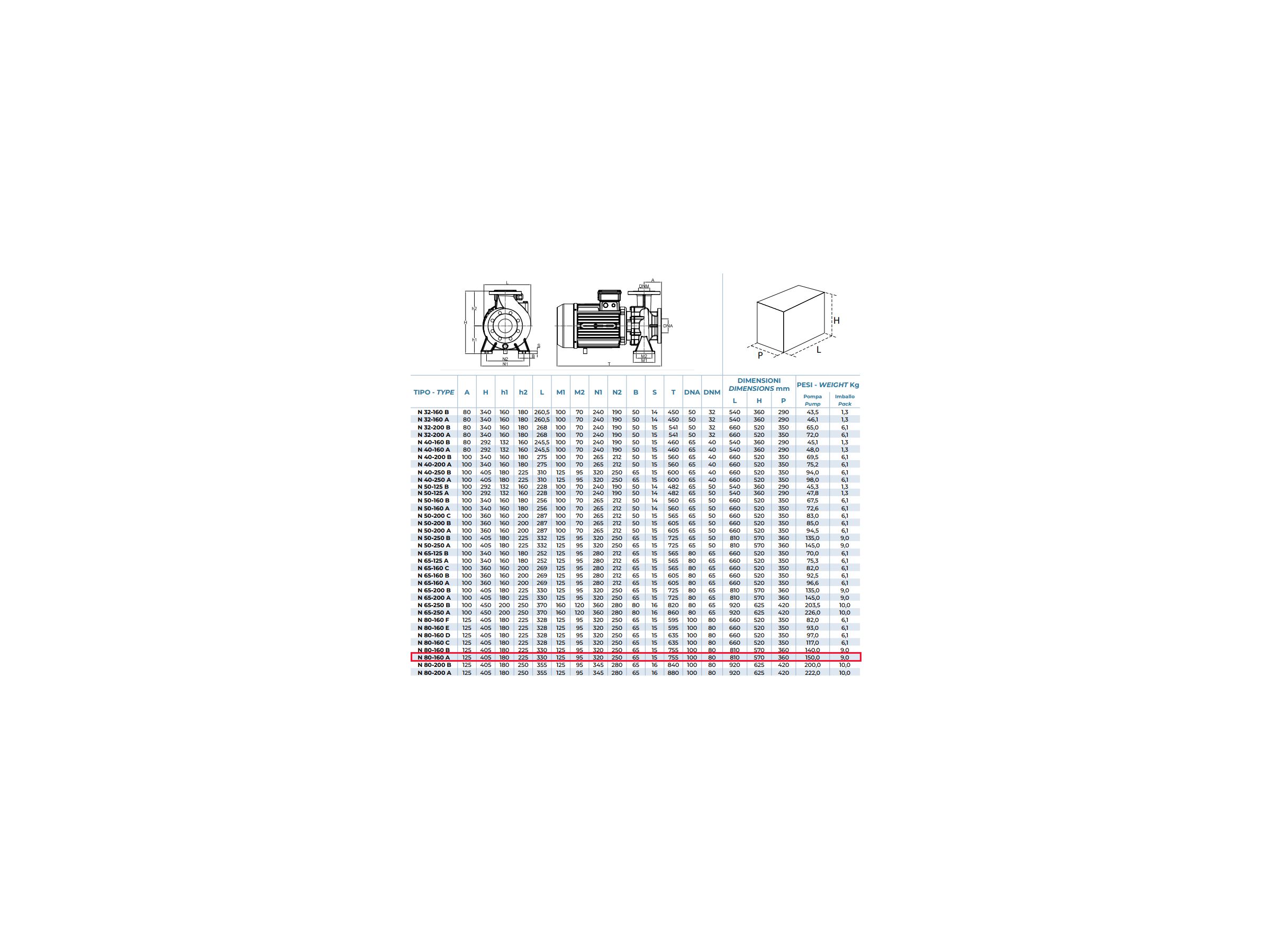 Моноблочний горизонтальний відцентровий насос Conforto N 80-160 А має важливу особливість - здатність створювати середньо-високі витрати та високі напори. Він виготовлений відповідно до стандарту EN733 з осьовим всмоктуванням і радіальною подачею, спрямованою вгору. В насосі Conforto N 80-160 А застосовується потужний трьохфазний електричний двигун 22 кВт закритого типу з зовнішнім вентилятором охолодження. Щоб забезпечити високу міцність і стійкість до пошкоджень - корпус насоса та робоче колесо виготовлені з чавуну G20, вал - із нержавіючої сталі AISI 304, та керамічне/графітове NBR механічне ущільнення.