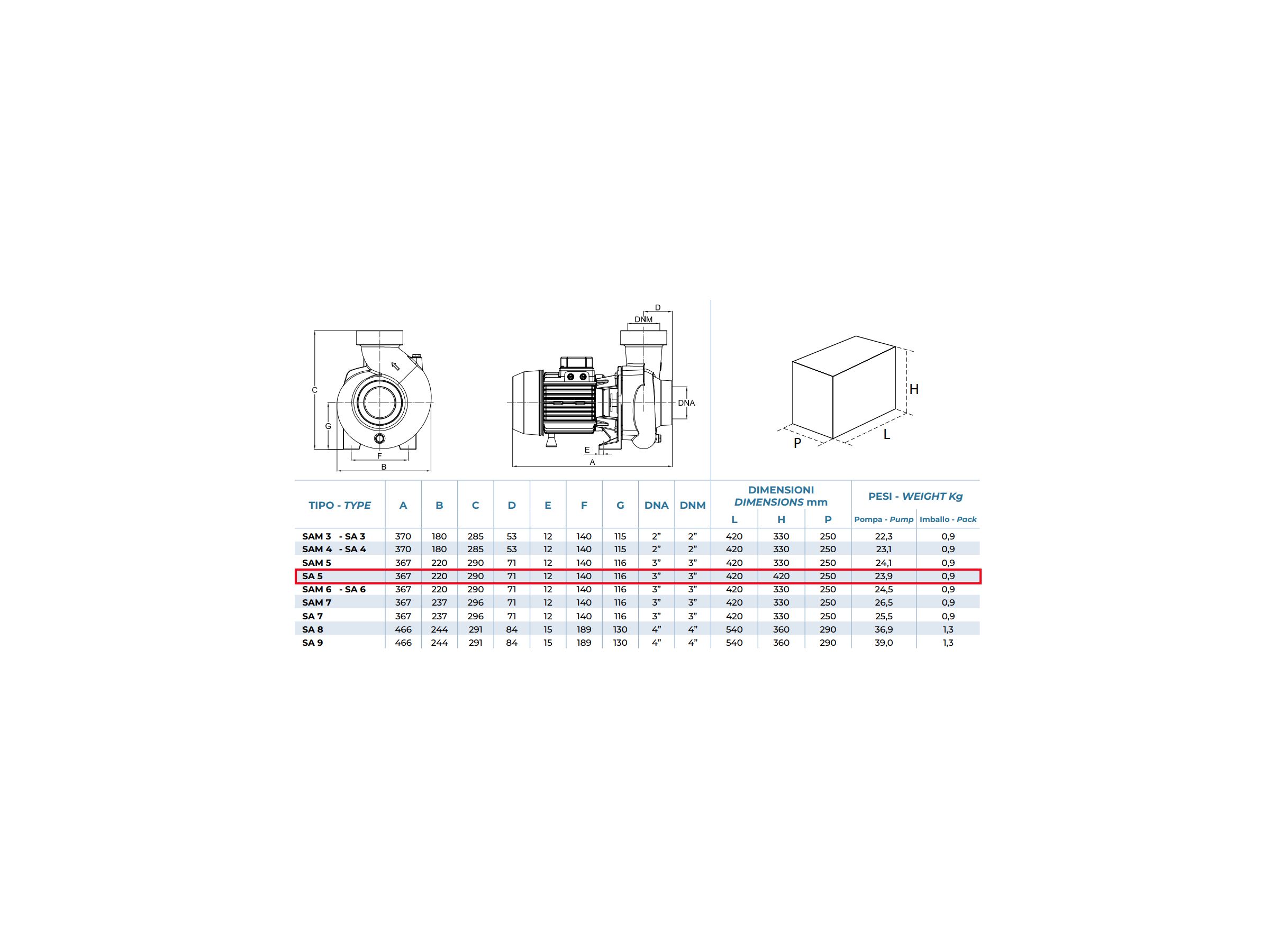 Моноблочний відцентровий насос Conforto SА 5 - з одним робочим колесом, з осьовим всмоктуючим отвором і радіальною подачею, спрямованою вгору, використовується в мобільних зрошувальних системах, каналах, системах накопичувальних резервуарів, сільському господарстві та промисловісті.