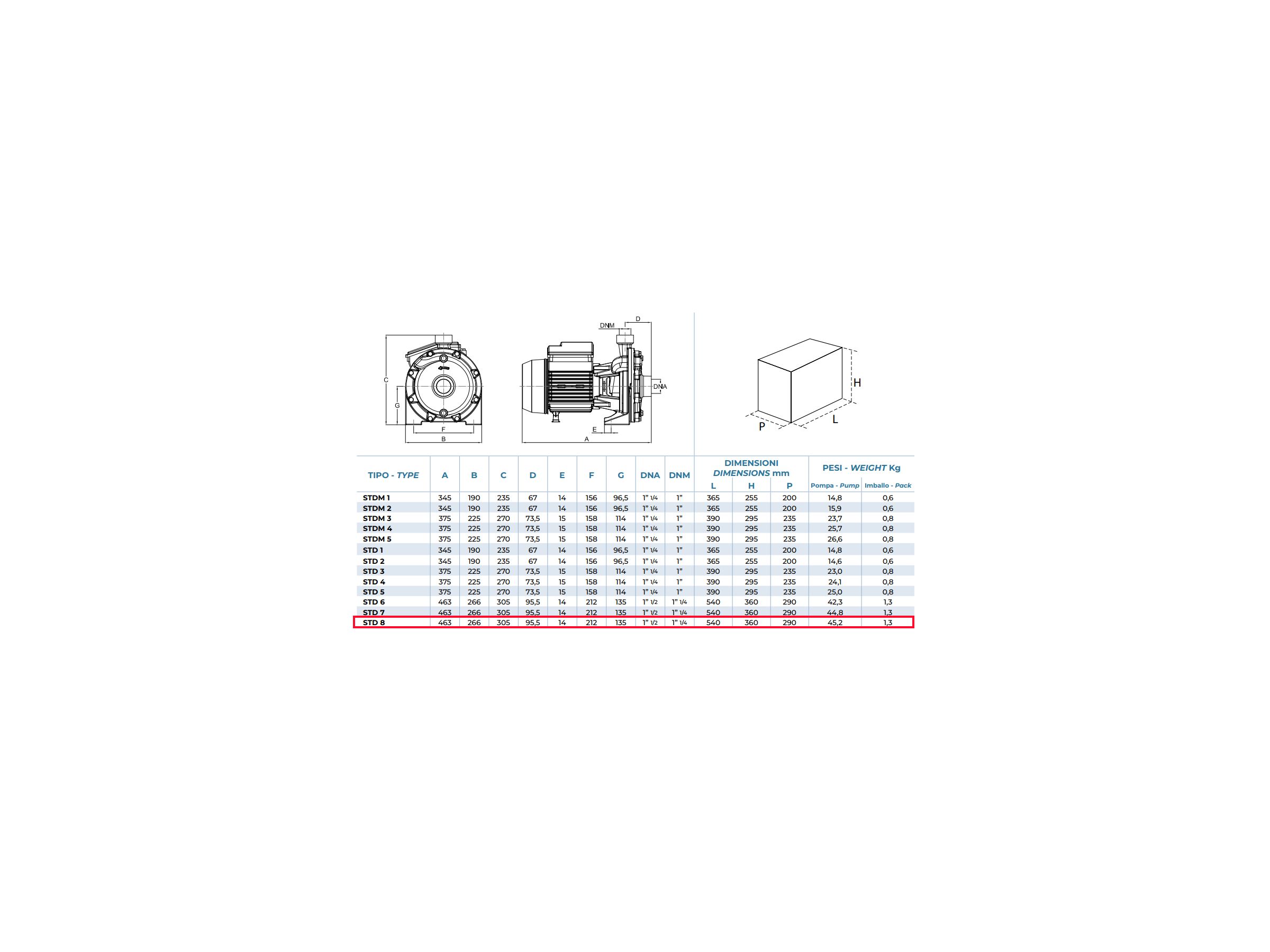 Моноблочний відцентровий насос Conforto STD 8 - застосовується для транспортування лише хімічно чистих рідин, вільних від сторонніх речовин, з температурою не вище 80°C. Насос Conforto STD 8 трифазний, з двома робочими колесами, осьовим входом і радіальною подачею, яка направлена вверх, зазвичай використовуються для потреб які вимагають високіх значень напору на виході, особливо в промисловості, сільському господарстві та побутовому використанні. Conforto STD 8 із горизонтальною віссю, з латунними радіальними робочими колесами закритого типу. Щоб забезпечити високу стійкість та міцність до пошкоджень, корпус насоса та опора виготовлені з чавуну G20, вал із нержавіючої сталі AISI 304 та керамічне/графітове механічне ущільнення. Енергоефективний і економічний в порівнянні з аналогами, це значно знижує витрати на електроенергію особливо при тривалому режимі роботи.