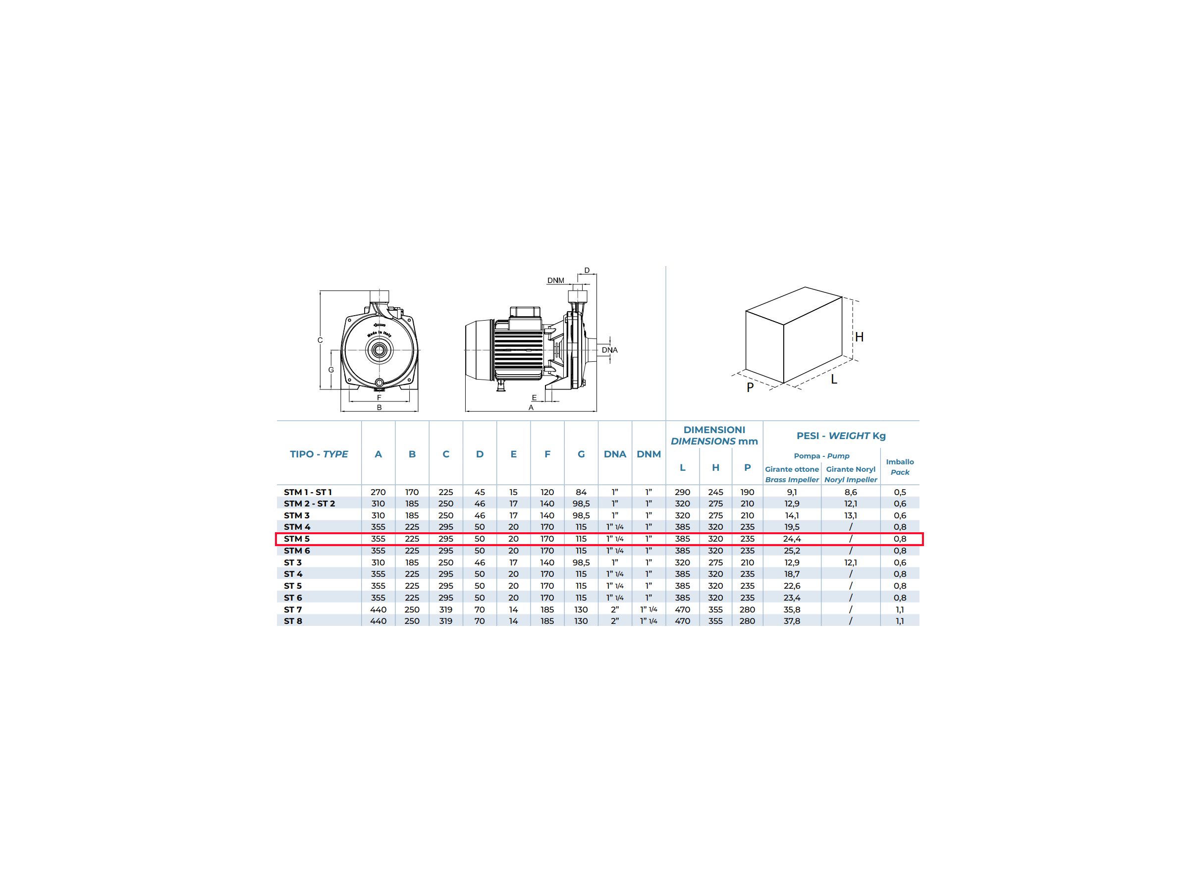Насос Conforto STМ 5 являє собою насос з горизонтальною віссю з латунним робочим колесом, корпус насоса і опора виготовлені з чавуну G20, вал - з нержавіючої сталі AISI 416 і торцеве ущільненням - з кераміки / графіту. Двигун насоса закритого типу з зовнішнім вентилятором охолодження, оснащений безпечним мікровимикачем, який керується термостатом щоб уникнути небажаних пошкоджень двигуна. Потужність 1,5 кВт робить Conforto STМ 5 дуже економічним у порівнянні з аналогами. Це значно знижує витрати на електроенергію, особливо при тривалій роботі. Працює у безперервному режимі S1, що дозволяє використовувати насос без зупинок.