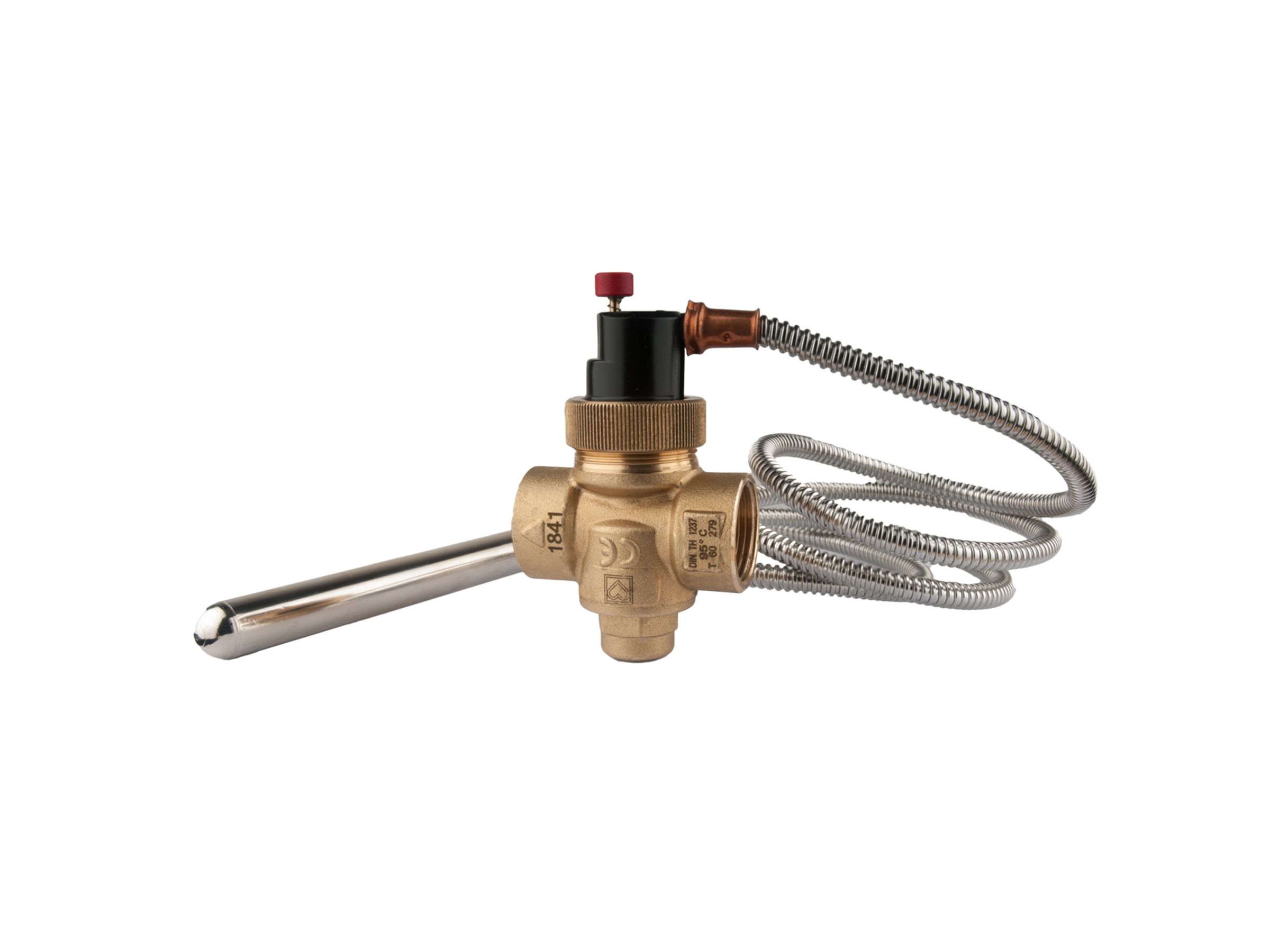 Клапан захисту відкривається при досягненні температури відкриття + 95°C, після чого відкривається доступ холодної води для охолодження котла.