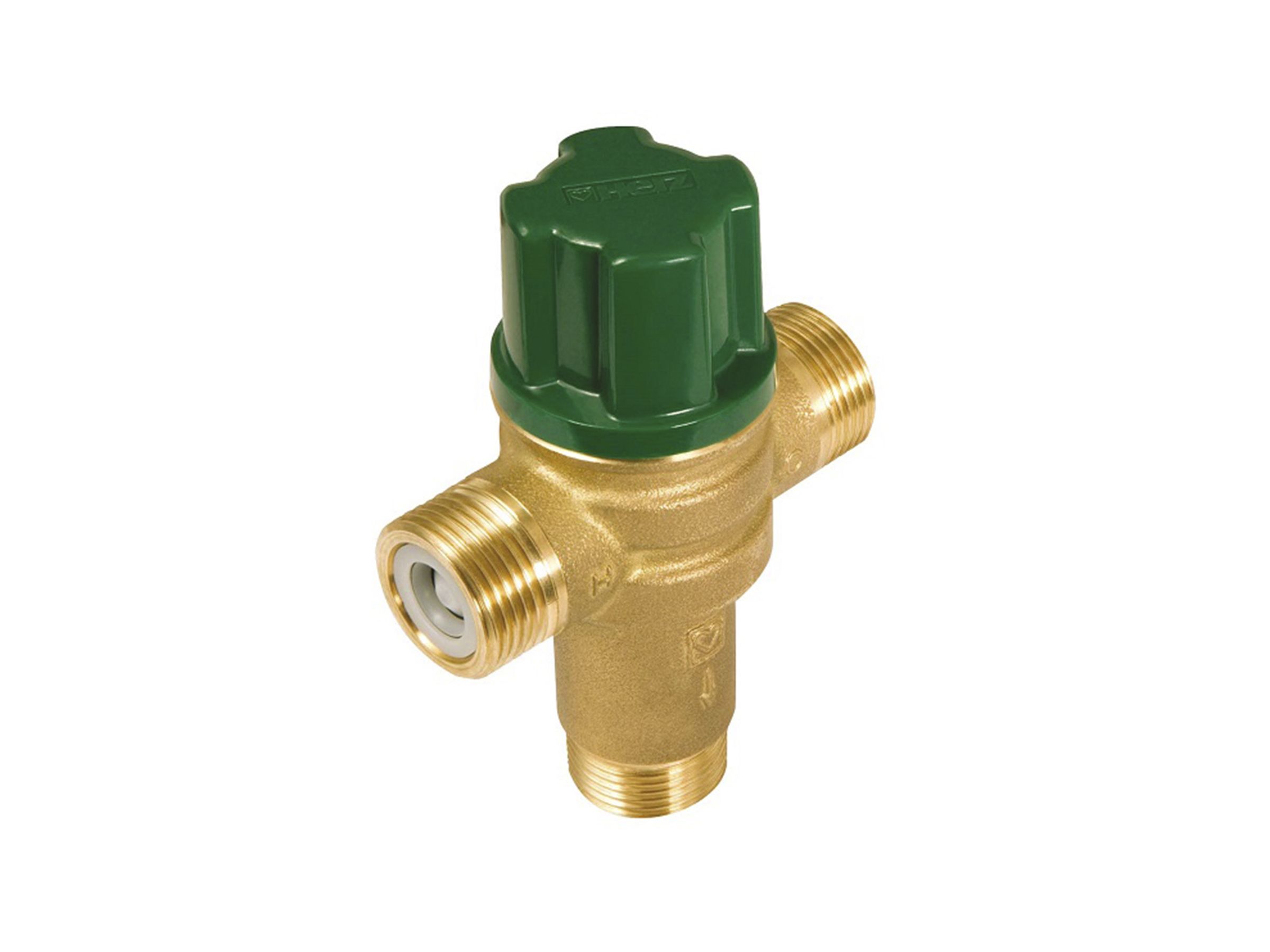Триходовий змішувальний клапан Herz TMV 2 із центральним напрямком потоку – це елемент регулювання температури в системі водопостачання, який дозволяє автоматично підтримувати постійну задану температуру на виході змішаної води.