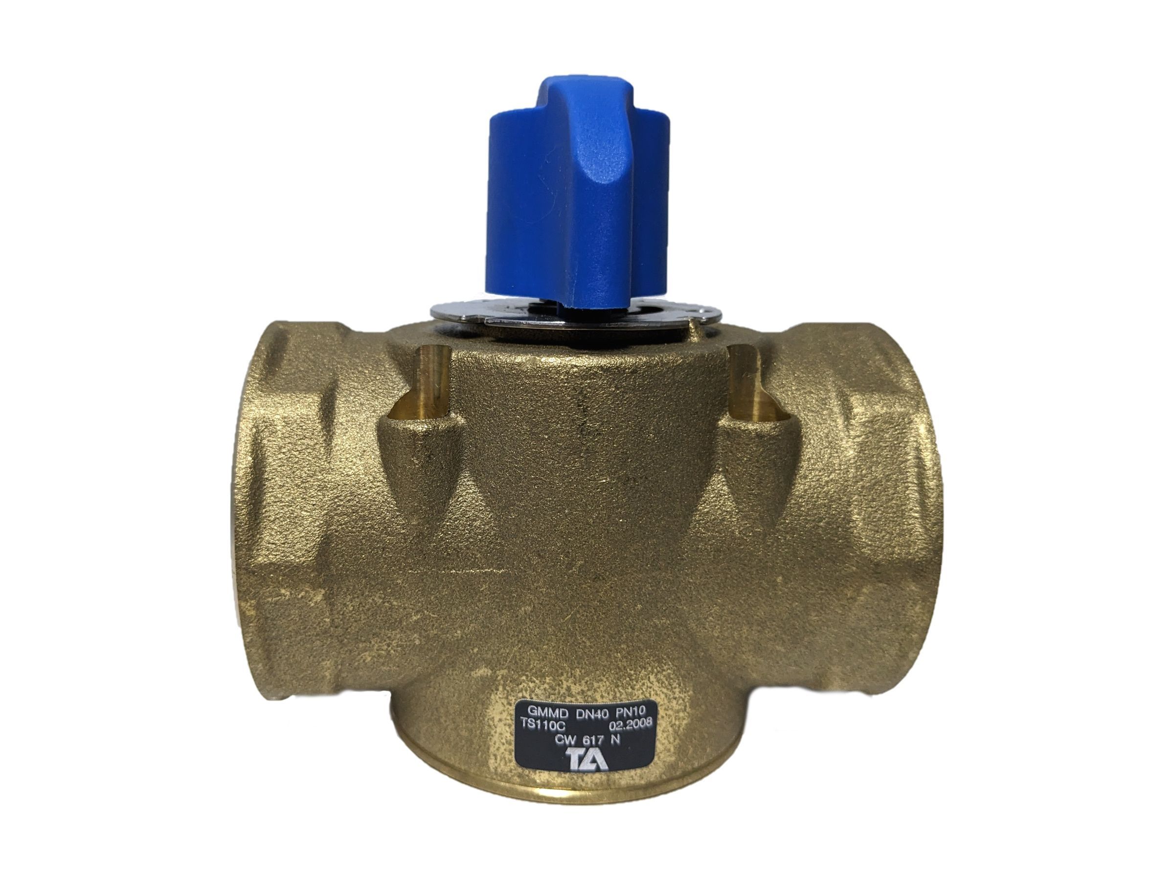 Триходовий поворотний змішувальний клапан GMMD. Регулюючий поворотний клапан 60-523-040 GMMD TA застосовується в установках опалення для різних середовищ. Клапан виготовлений з латуні, ущільнення виконані з жаростійкого каучуку EPDM і може працювати для таких робочих рідин: